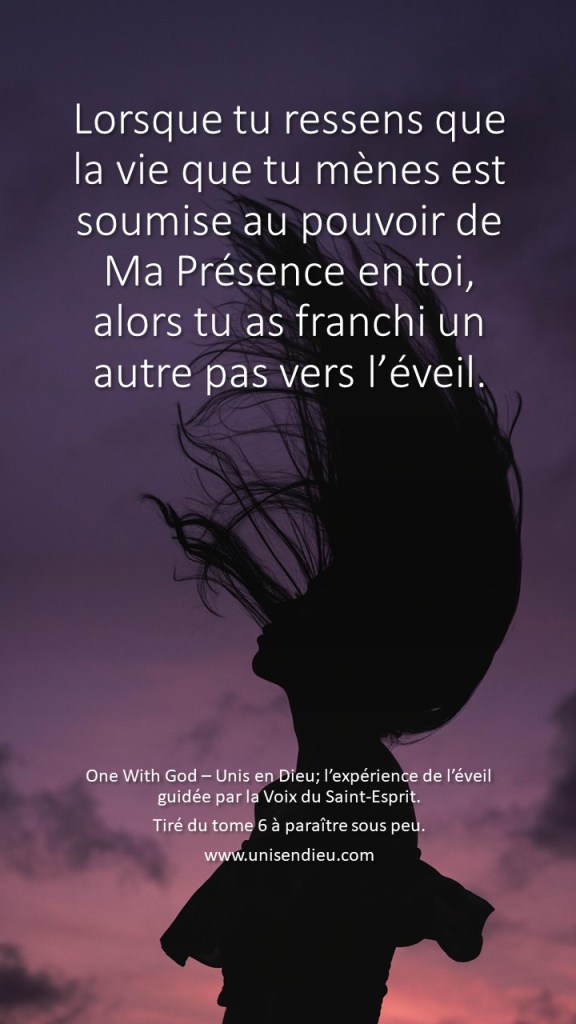 La vie que tu mènes est soumise au pouvoir de Ma Présence.