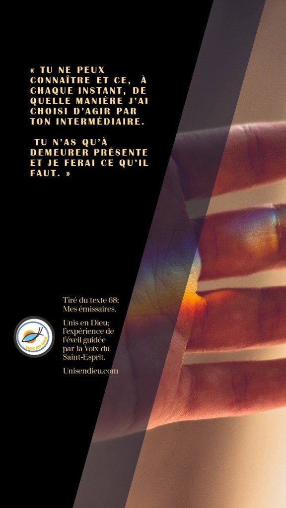 Je me suis déposée entre les Mains du Saint-Esprit et je L’ai laissé me guider vers ce qui apparaît aujourd’hui comme étant une nouvelle étape dans ma vie.